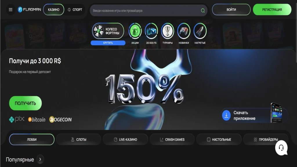Flagman — казино в “классическом” формате: быстрый вход, понятная навигация по слотам и live-разделу, акцент на бонусах для старта и регулярных промо дальше.